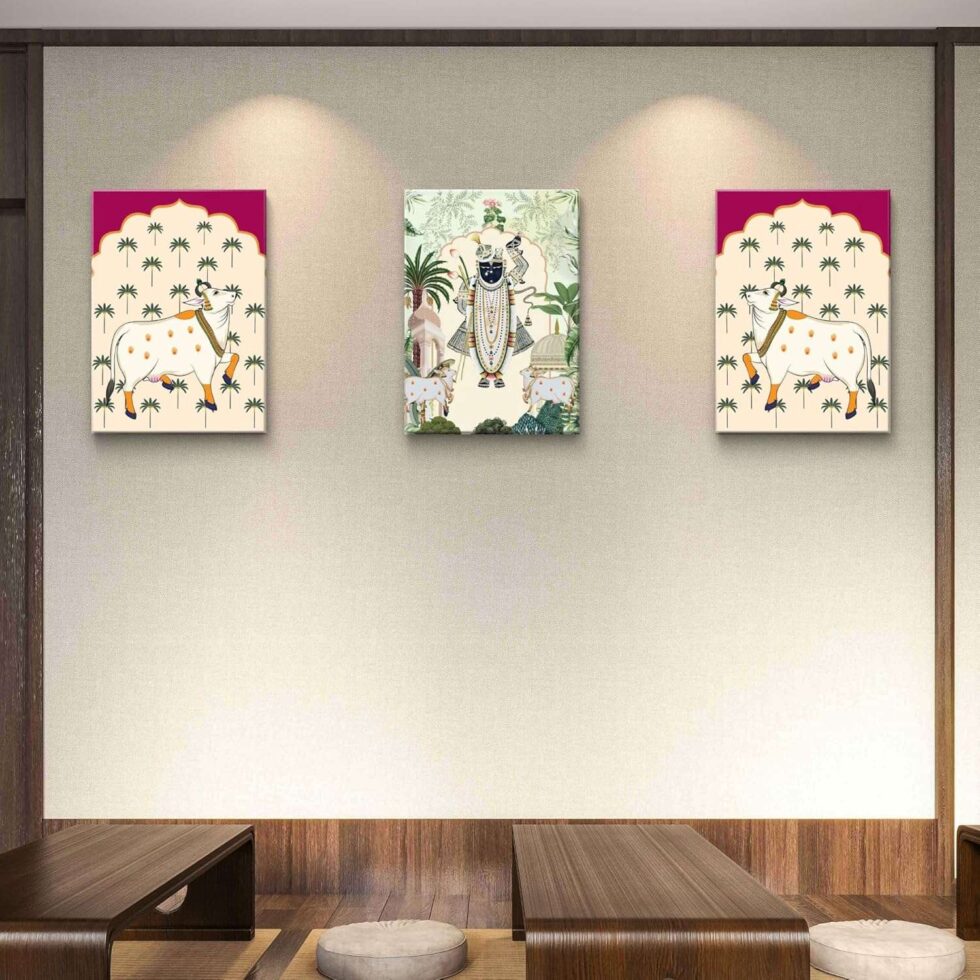 A harmonious blend of traditional artistry and modern design, this wall painting adds cultural richness to any space.