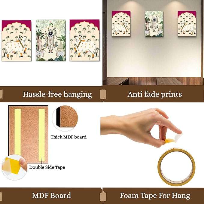 This captivating wall painting seamlessly blends traditional artistry with contemporary design, making it a perfect addition to any modern living space. Crafted with meticulous attention to detail, it features intricate patterns and vibrant colors that evoke a sense of harmony and cultural richness. Ideal for enhancing the ambiance of your home or office, this artwork serves as a testament to timeless craftsmanship and artistic expression.